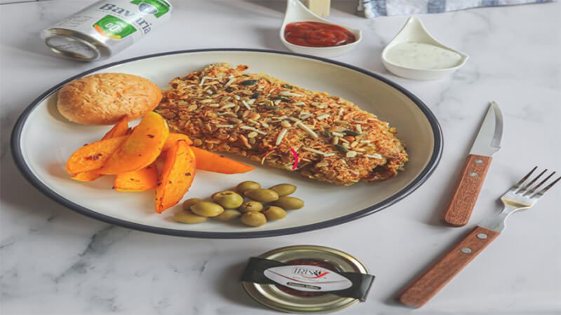 چیزیکه این سوخاری رو متفاوت میکنه عطر خوب زعفرون آیریس و روکش متفاوتشه. اول از همه زعفرون رو به همراه نمک و فلفل و پودر سیر و پاپریکا مخلوط می کنیم و به سینه مرغی که از قبل با بیفنک کوب کوبیدیم می زنیم و نیم ساعت به اون داخل یخچال استراحت میدیم و اجازه میدیم که حسابی خوشمزه بشه. زعفرون بوی بد مرغ رو از بین میبره. توی این فاصله پودر پانکو، مخلوطی از تخمه ها، پرک جو و خلال بادوم رو مخلوط می کنیم. حالا مرغی که مزه دار شده رو داخل آرد سفید، تخم مرغ همزده شده و مخلوطی که داریم می غلتونیم. میتونید مرحله تخم مرغ و مخلوطی که از پودر پانکو و مغزها داشتید رو دو بار انجام بدید. مجددا مرغ رو برای نیم ساعت داخل یخچال استراحت میدیم که حسابی این روکش به مرغمون بچسبه و دیگه داخل روغن از هم جدا نشه. توی این فاصله سیب زمینی هایی که خلالی کردیم و 10 دقیقه داخل آب جوش و نمک پختیم رو همراه با زعفرون، نمک، پرک چیلی و پودر سیر، کمی رزماری و روغن حسابی مخلوط می کنیم تا یه سیب زمینی خوشمزه رستورانی داشته باشیم، ولی ایندفعه با عطر زعفرون. بعد از اینکه حسابی سیب زمینی رو با طعم دهنده ها مخلوط کردیم توی فری که گرم شده با دمای 200 درجه بمدت نیم ساعت میپزیم تا حسابی پوک و ترد و خوشمزه بشه. حالا مرغ هارو داخل روغن، با حرارت ملایم سرخ می کنیم تا مغزپخت بشه و خوشرنگ. نوش جان